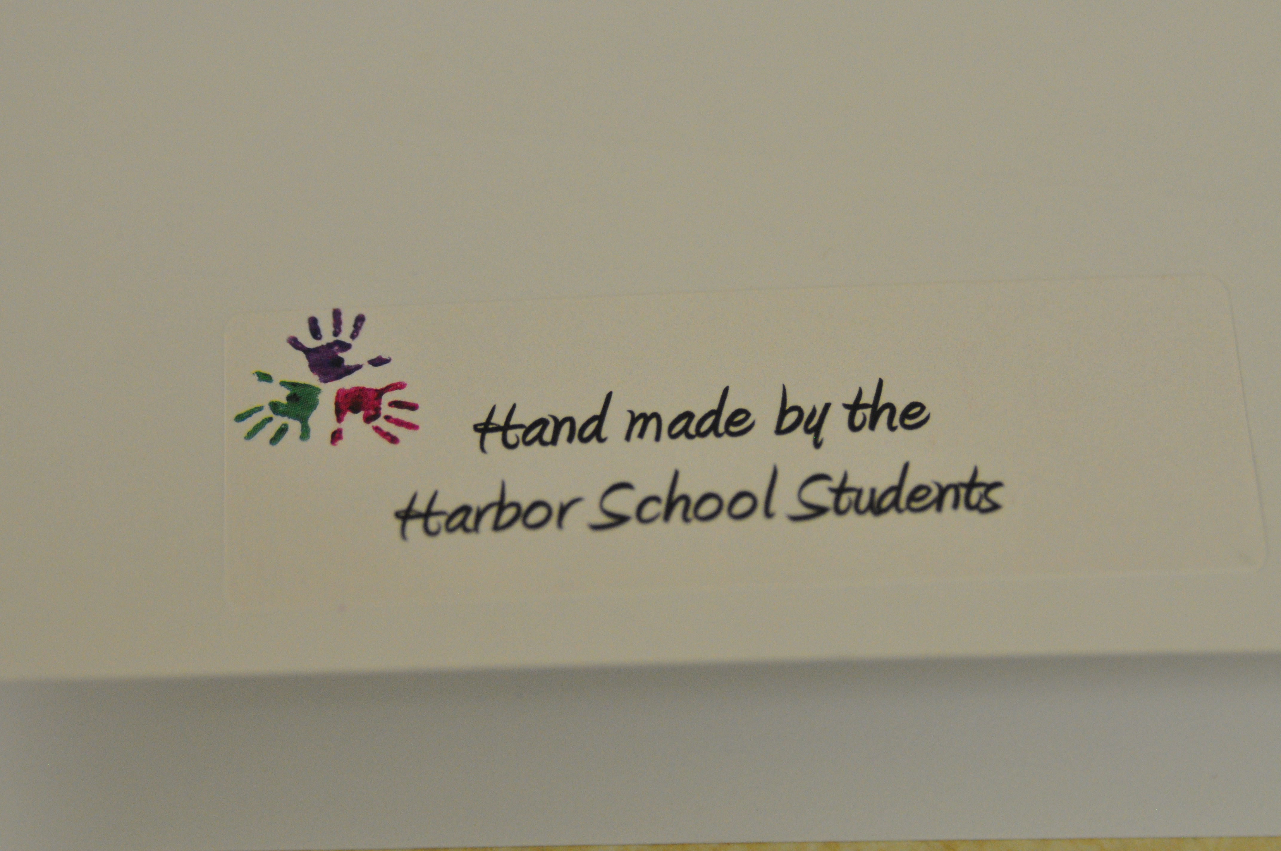 We also have two businesses here at Harbor. One is napkins using an embossing machine. These napkins can be personalized with names, monograms, initials and pictures of different holidays.